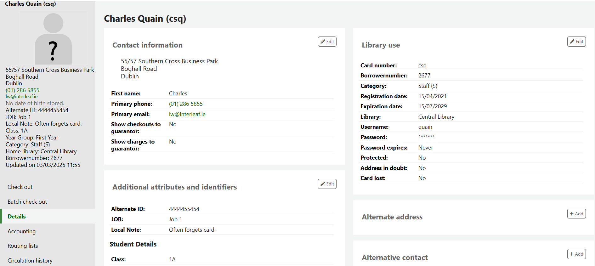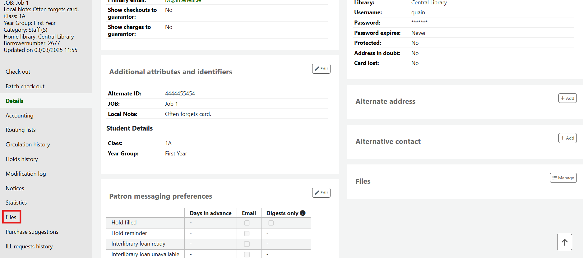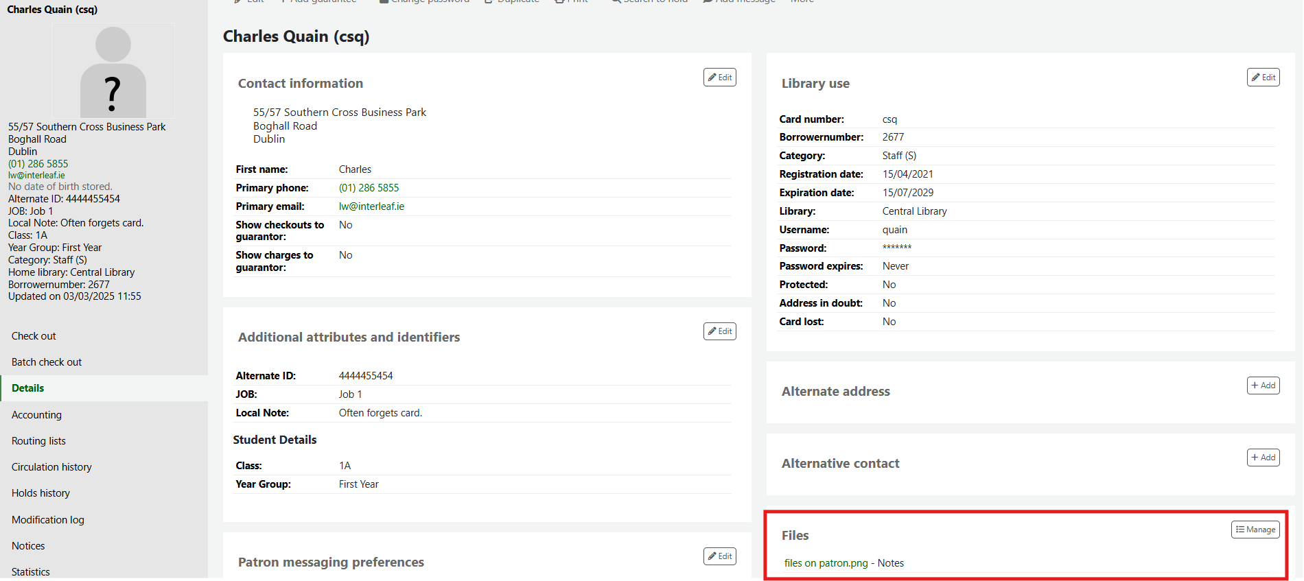 The loaded file will also appear on the patron detail page: