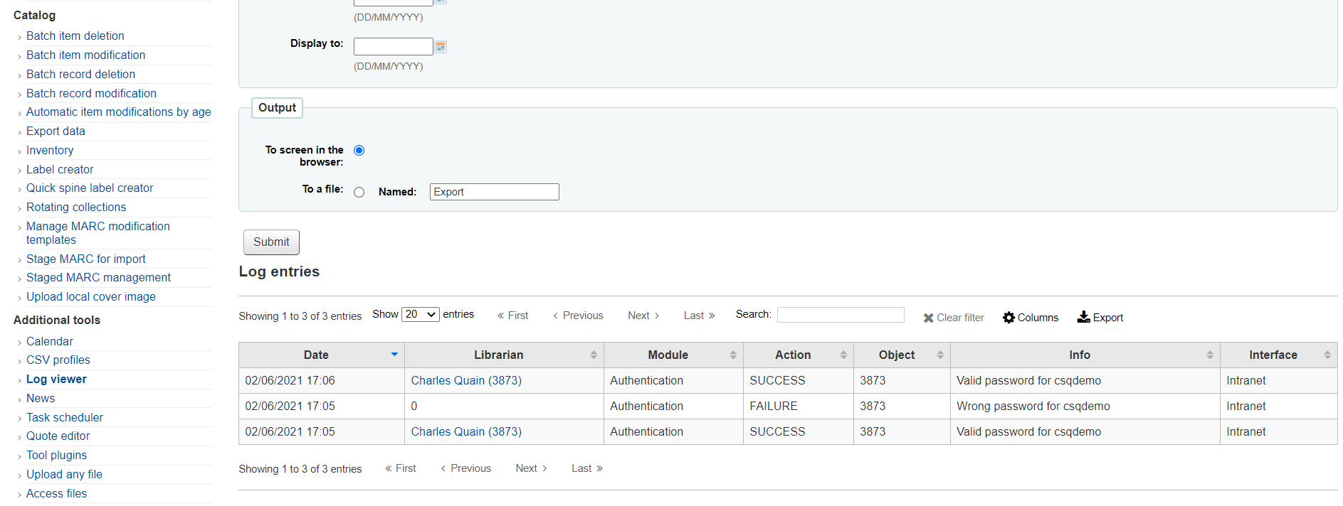 It is possible to set the log on Koha to record successful and unsuccessful attempts to login to the system. This document will outline how to set this login information to be recorded and how to search the logs for the information.