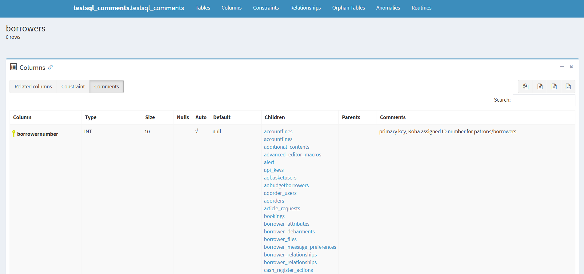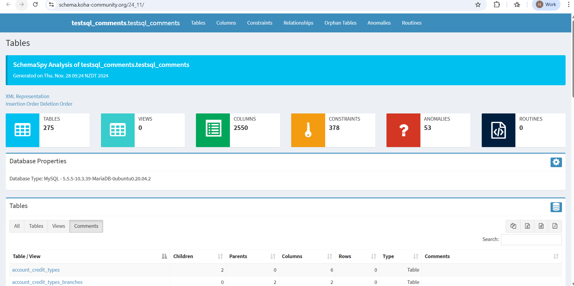 SQL reports in Koha can be intimidating. One of the key resources to learn how to more effectively create, edit and read the results of SQL reports within Koha is the database schema site. This site provides a map of the database which includes the specific tables, the content therein and the links between the tables. This information can be used to create reports and also to understand why certain tables were used in existing reports.