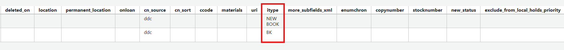In this case, I noticed that the format of the item type did not match the format of the other item types that were on the site, which indicated that the item type had to be edited on one of the items attached to the identified bibliographic record.