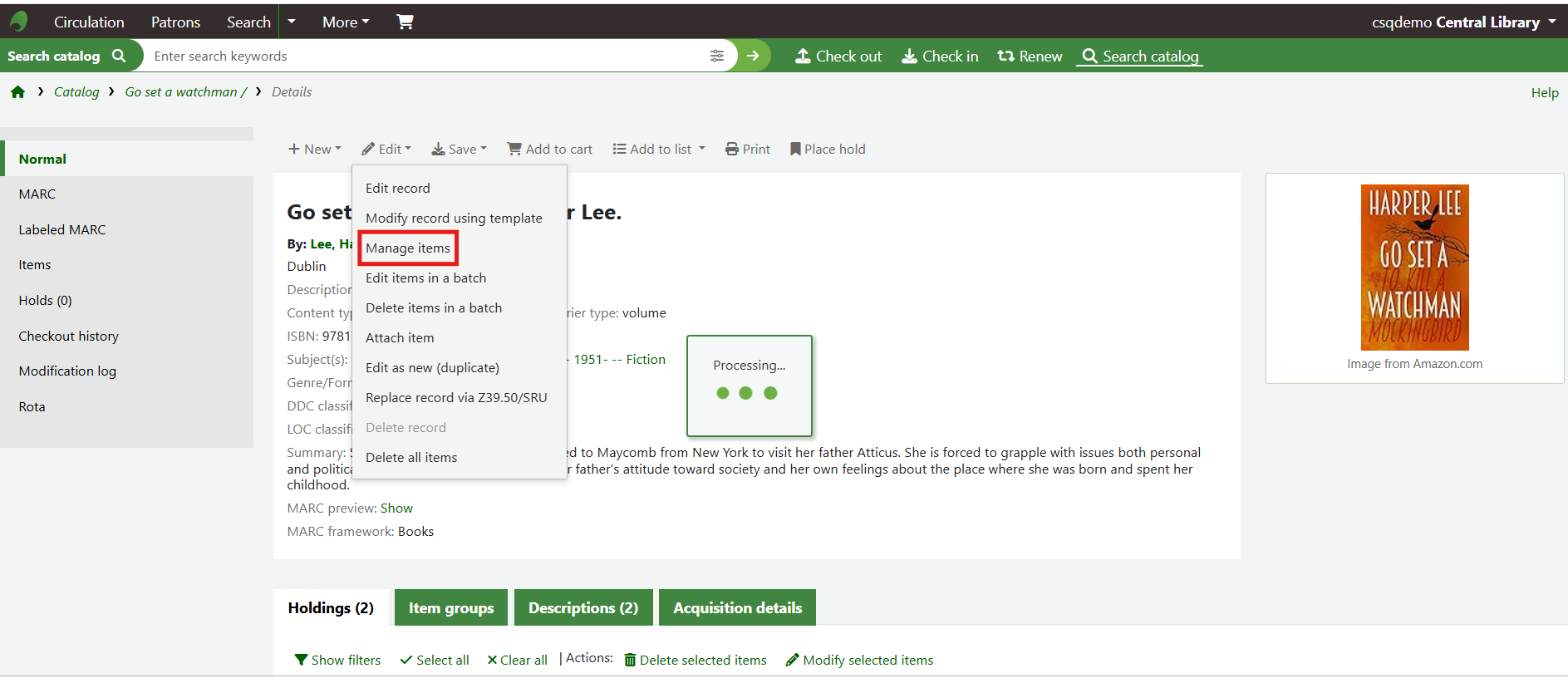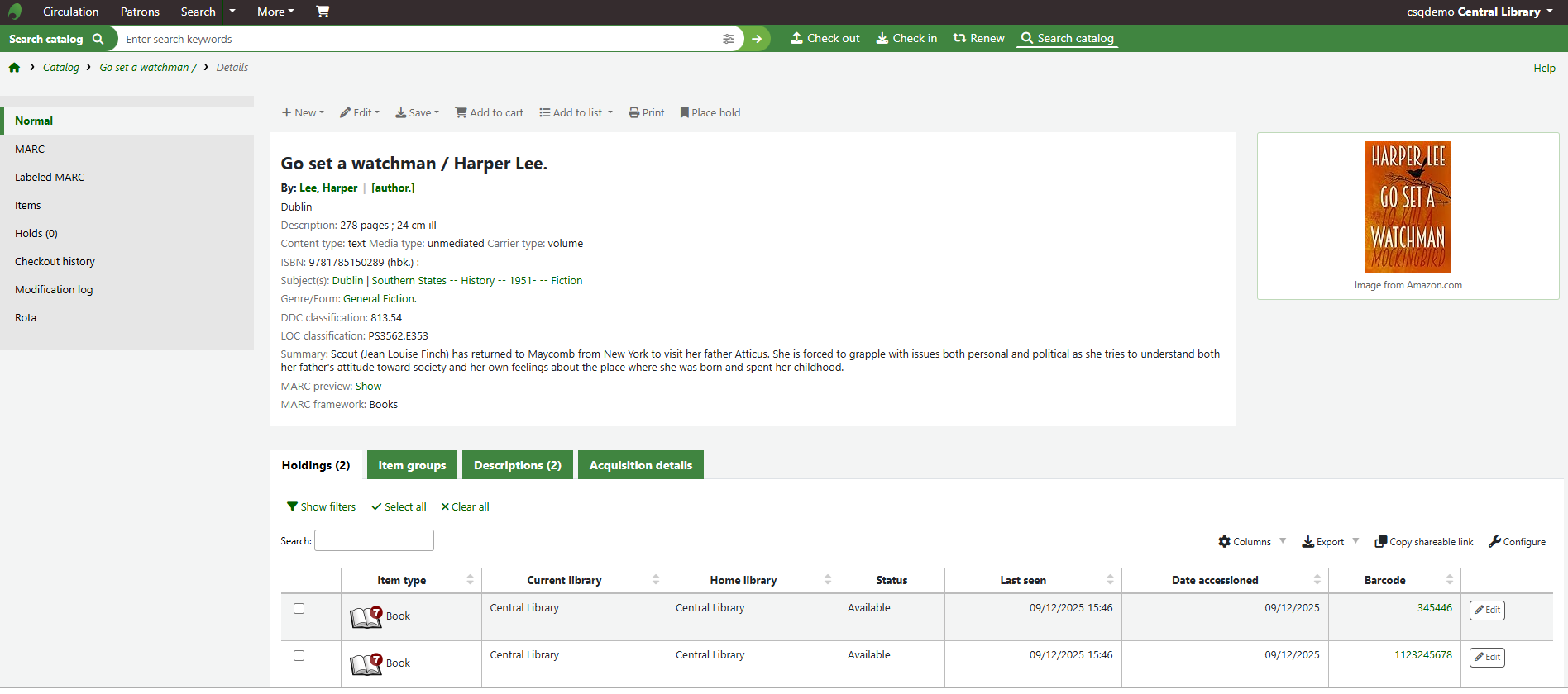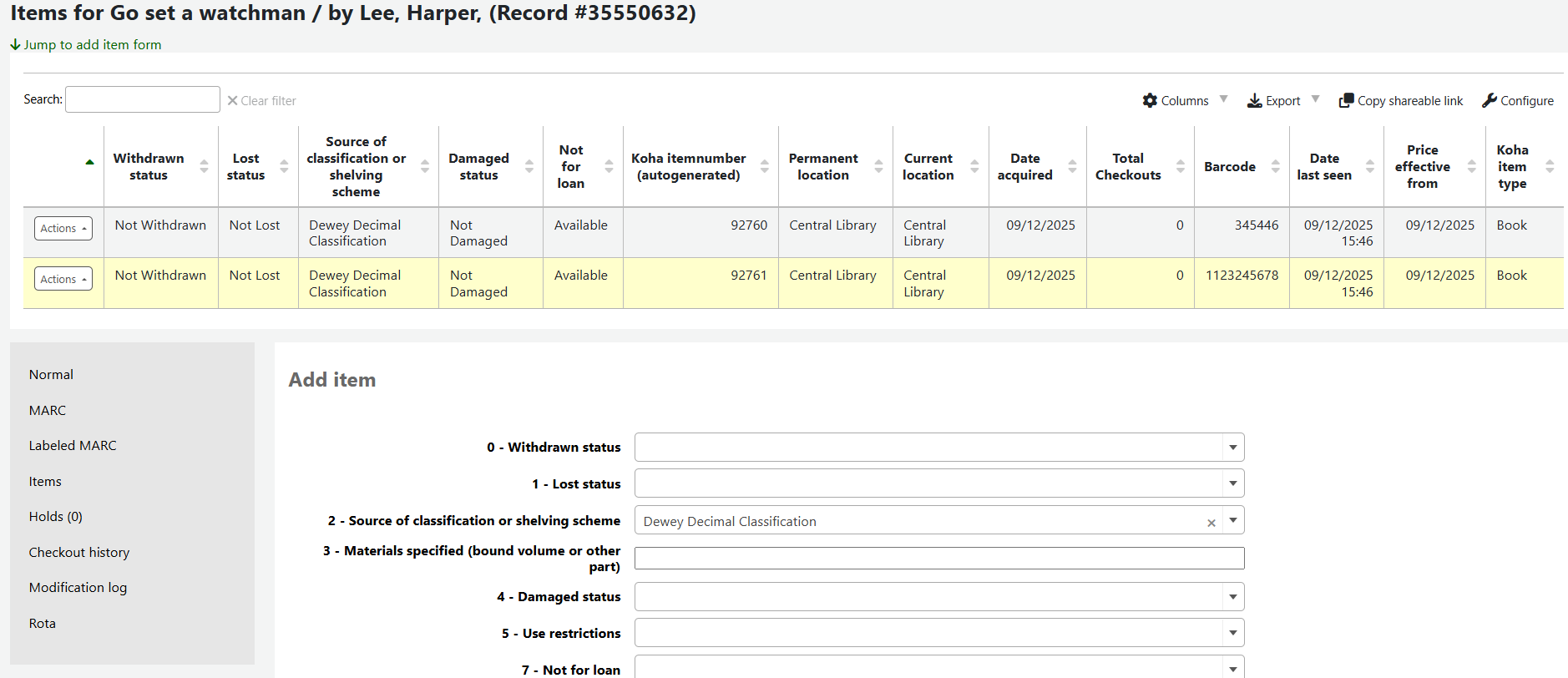 These errors tend to come up when trying to directly view a table on Koha. I most frequently see it occurring on the item table or on a table which pulls information from the item record itself e.g.: baskets in the acquisitions module, but it can happen anywhere on the system. For this document, I have used an example that was sent in a few months ago where a site couldn't view the details of the items on a specific bibliographic record.