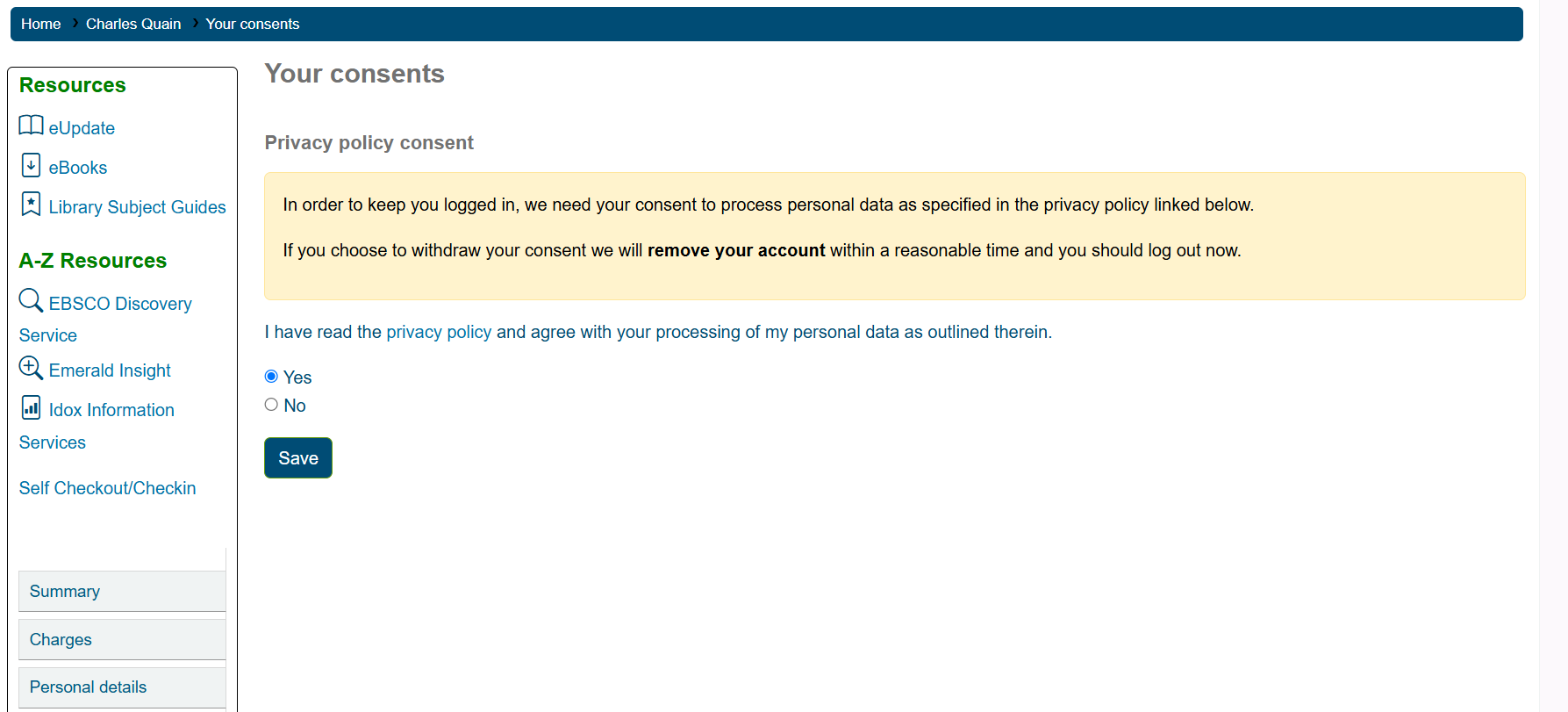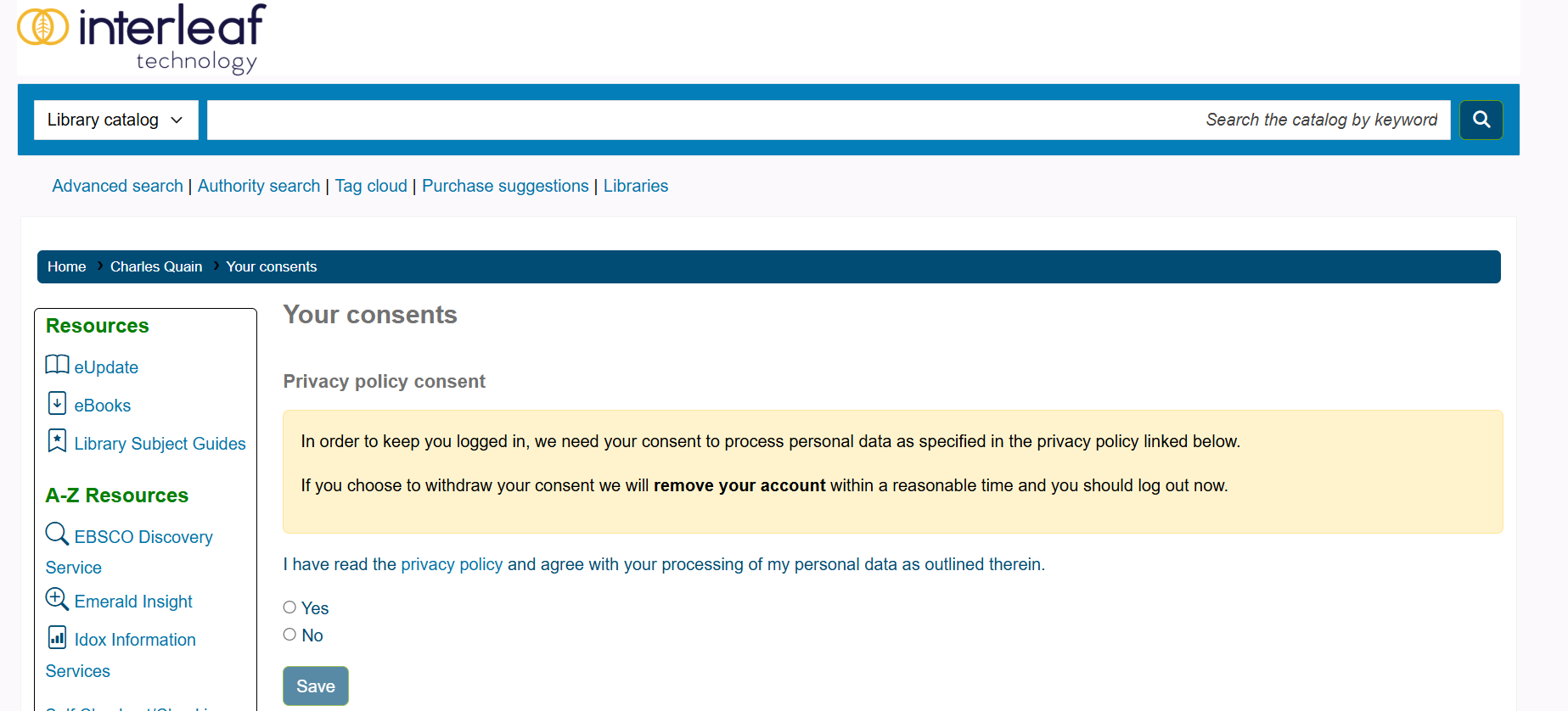It will be mandatory for users to consent to a privacy policy before they can use the OPAC site.