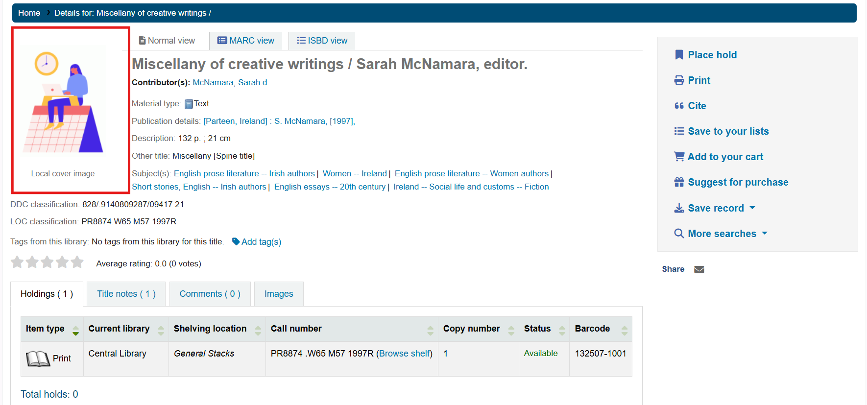 Below is an example of bibliographic record without a cover image: