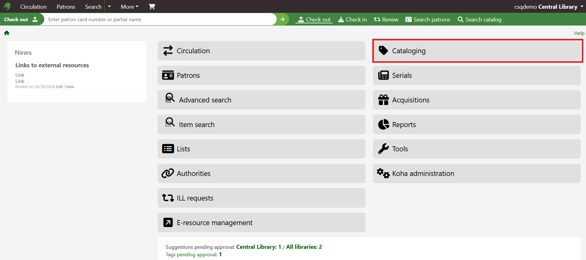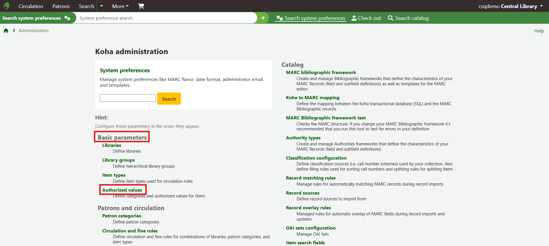 Go to KOHA administration > Basic parameters > Authorised Values.