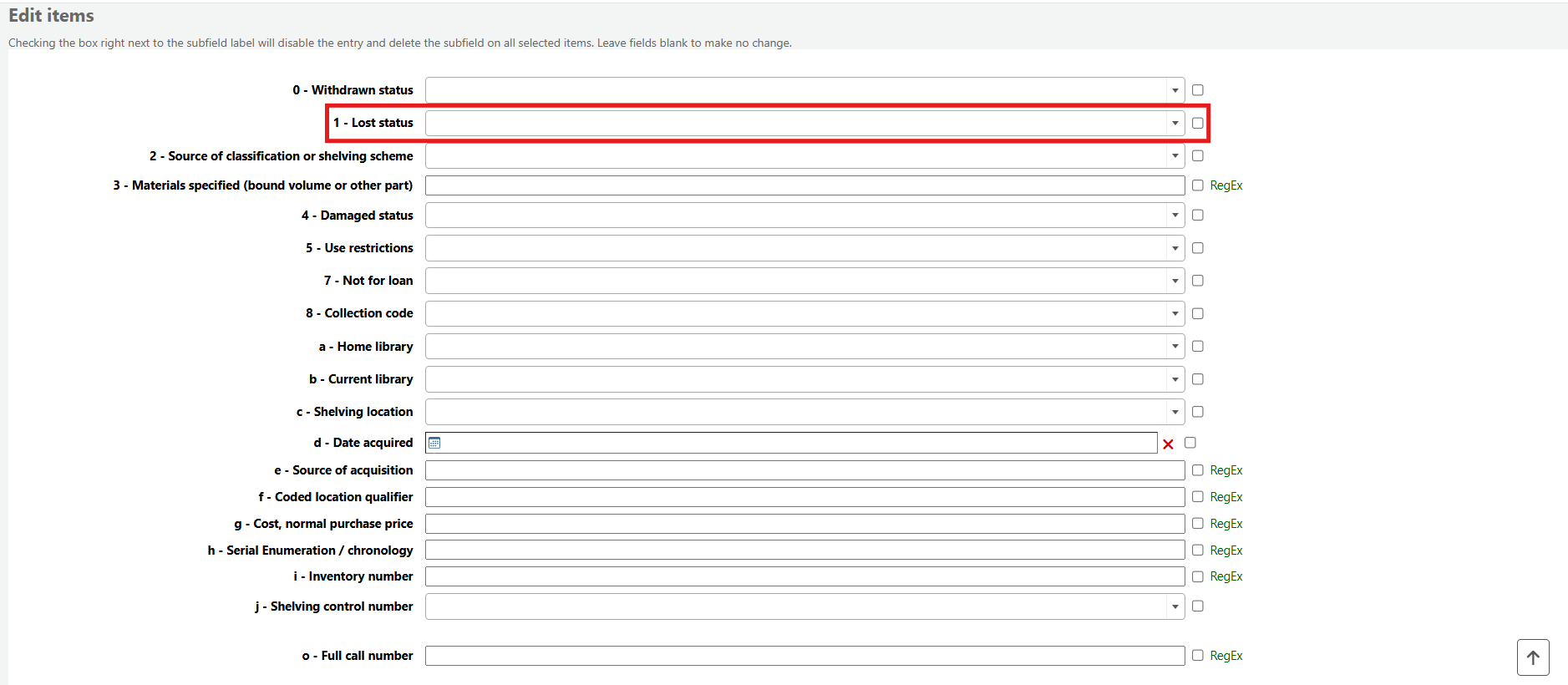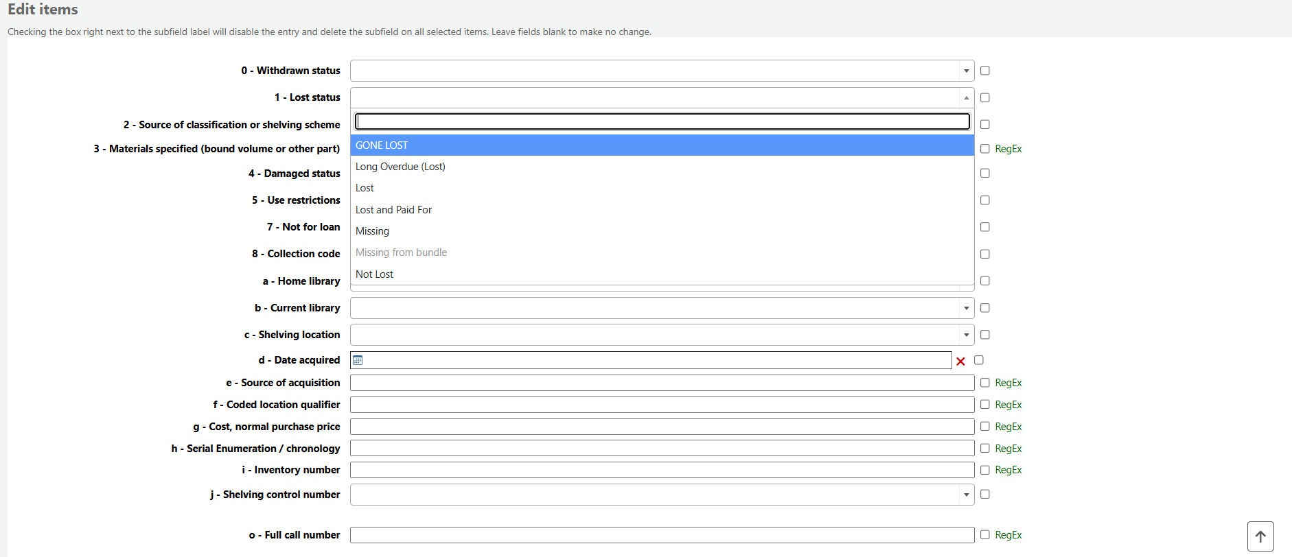 Scroll to the bottom of the page and there will be an Edit Items form available. Find the 1 – Lost status and click the dropdown beside it