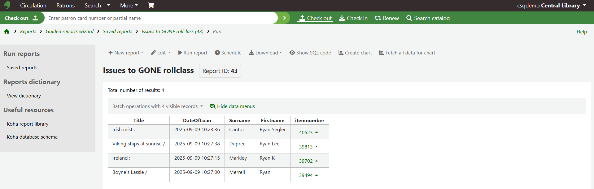 It is also possible to run report Current Loans by Roll Class during and at the end of the school year to check what items are still on loan and who has them. This could help in reducing the amount of GONE borrowers at the end of the year that cannot be deleted from the system as they have items on their account.