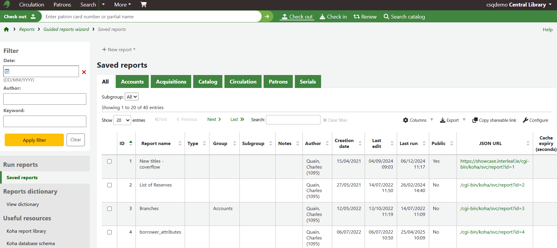 Return to the Saved reports table by clicking Saved reports to the left-hand side of the screen.