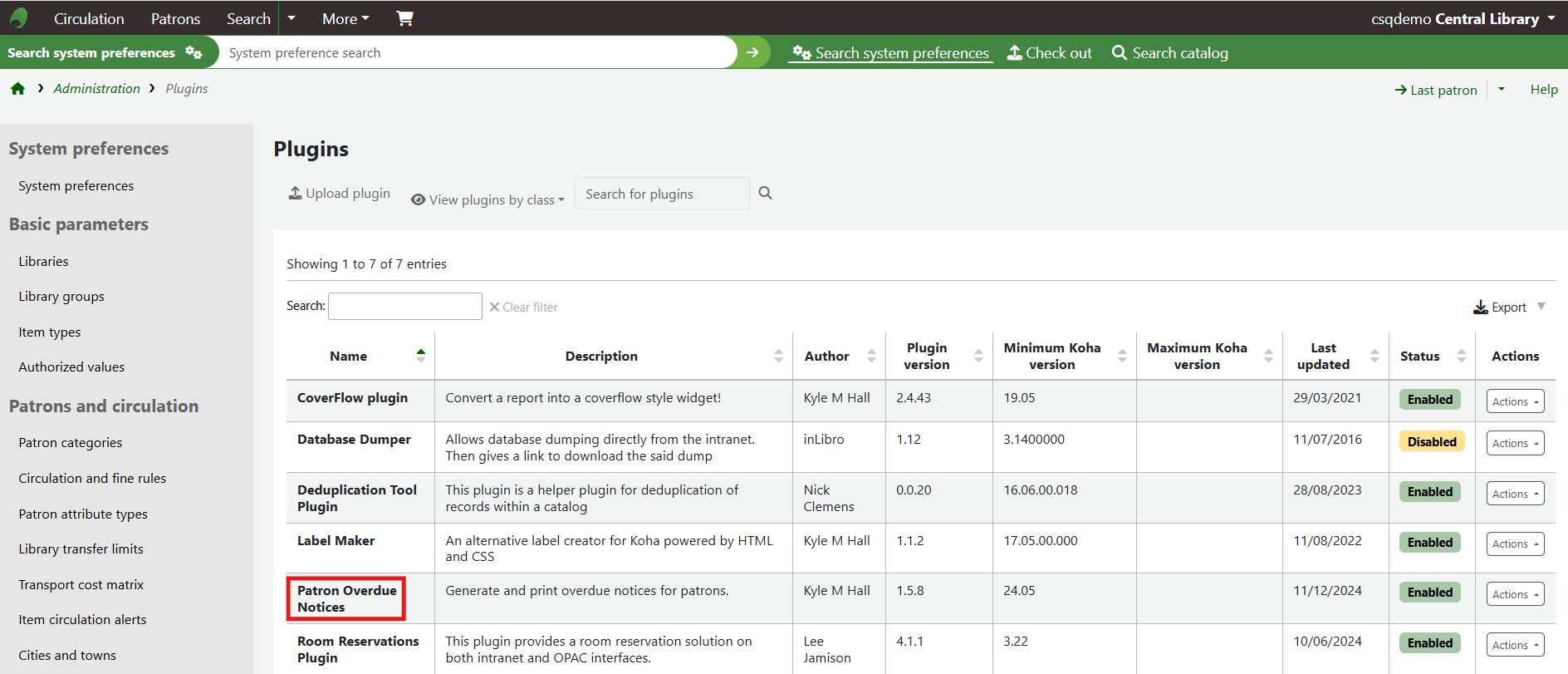 Once this has been successfully uploaded the Patron Overdue Notices plugin will appear:
