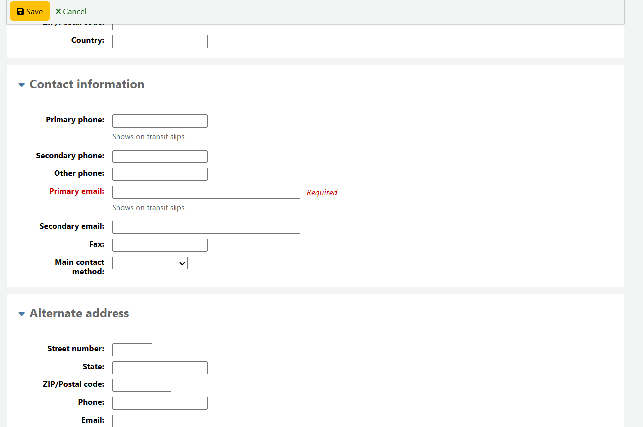All fields with a Required in red beside the box must be filled in before the record can be saved. Mandatory Fields