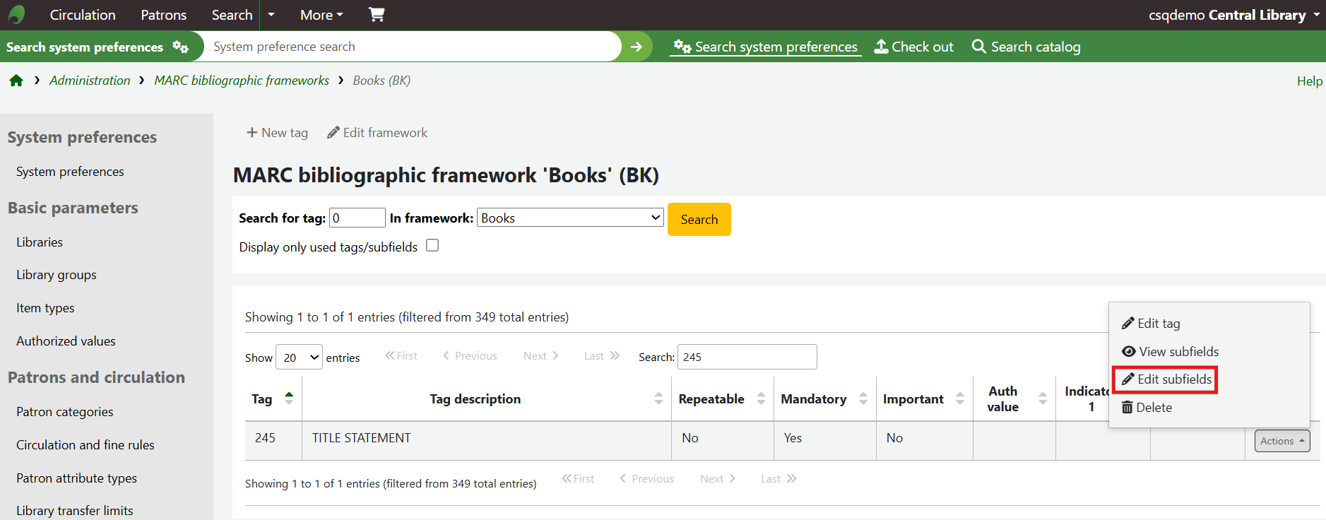 This will create a dropdown menu. Select Edit subfields from this menu.