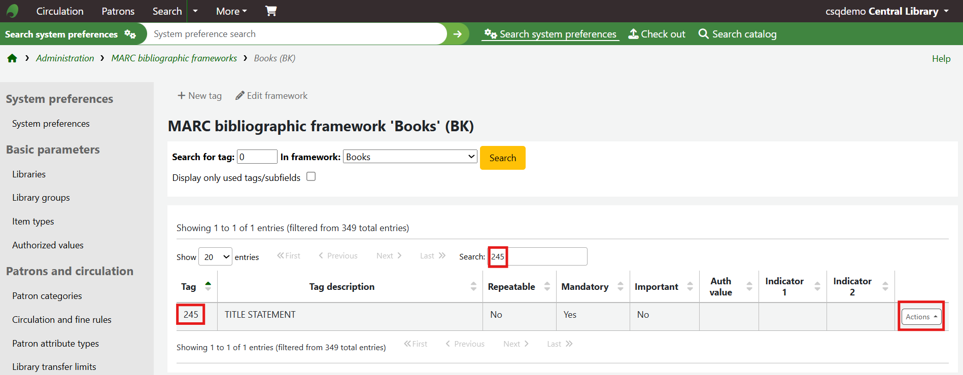 This example will use 245$c field, but the principles can be applied to whichever field you wish to edit. As the number being searched for is typed into the search box, the table of fields will narrow down to matching entries.