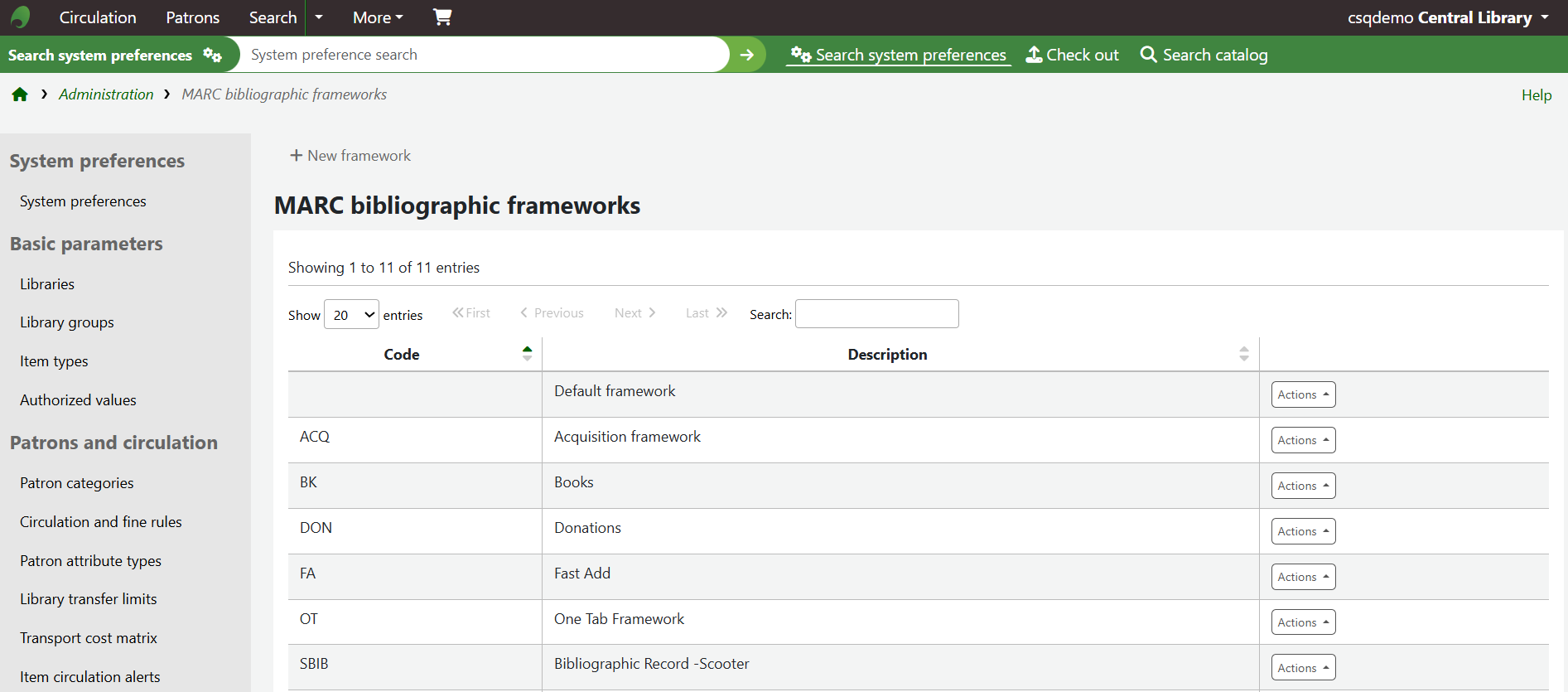 This will take you to a page with a table of the frameworks available on your site.