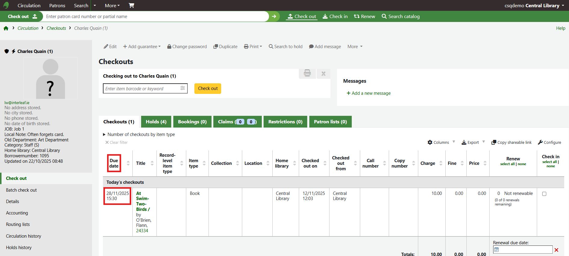 For more information on how to set overall due dates through the fine and circulation function, please contact Interleaf Technology directly.