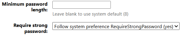 At the bottom of the form, there will be the options for Minimum password length and Require strong password options: