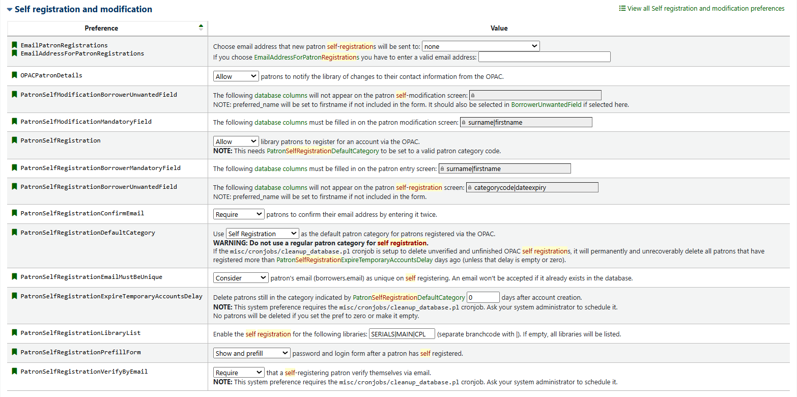 This document will outline optional system preferences that can be used to personalise how the self registration form functions.