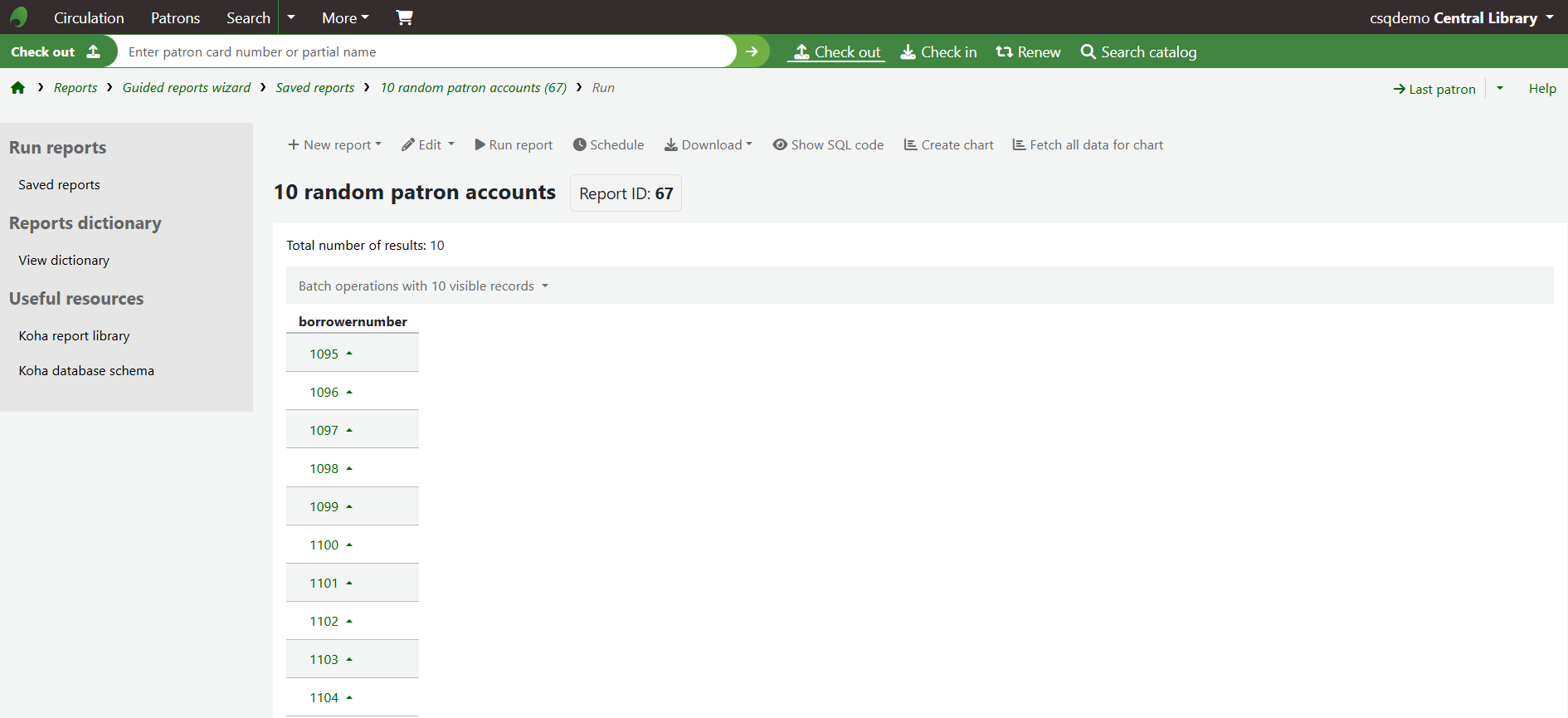 For assistance in creating a report to bring back a specific borrowernumber or range of borrowernumbers, please contact