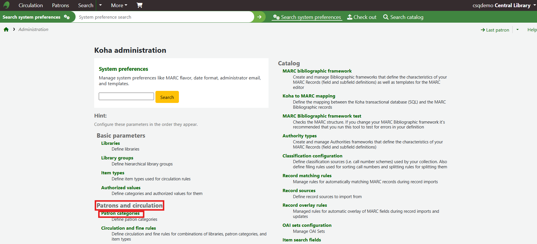 Select the patron category to set the Predue notice to go out for and look under the Default messaging preferences for this patron category. This notice can be set to go out up to 30 days in advance of the items being due. Select the number of days in advance the Predue notice should go out for the patron category from the dropdown option in the Days in advance column for the Advanced notice row. Tick the box under the Email column for the Item Due row. Hit Save.
